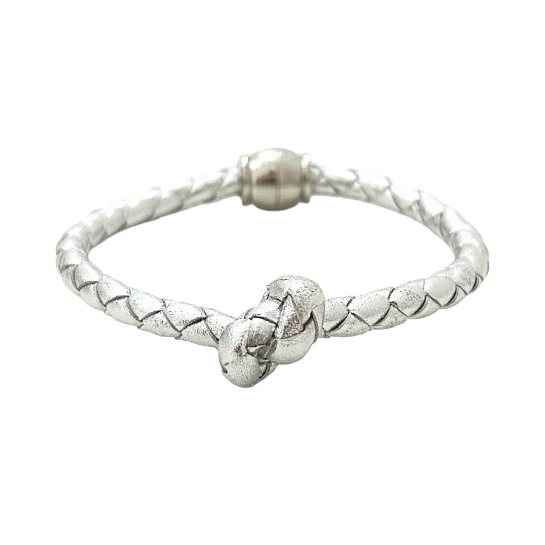 A coastal classic this nautical inspired leather rope bracelet is perfect for stacking and has a silver plated magnetic closure.
