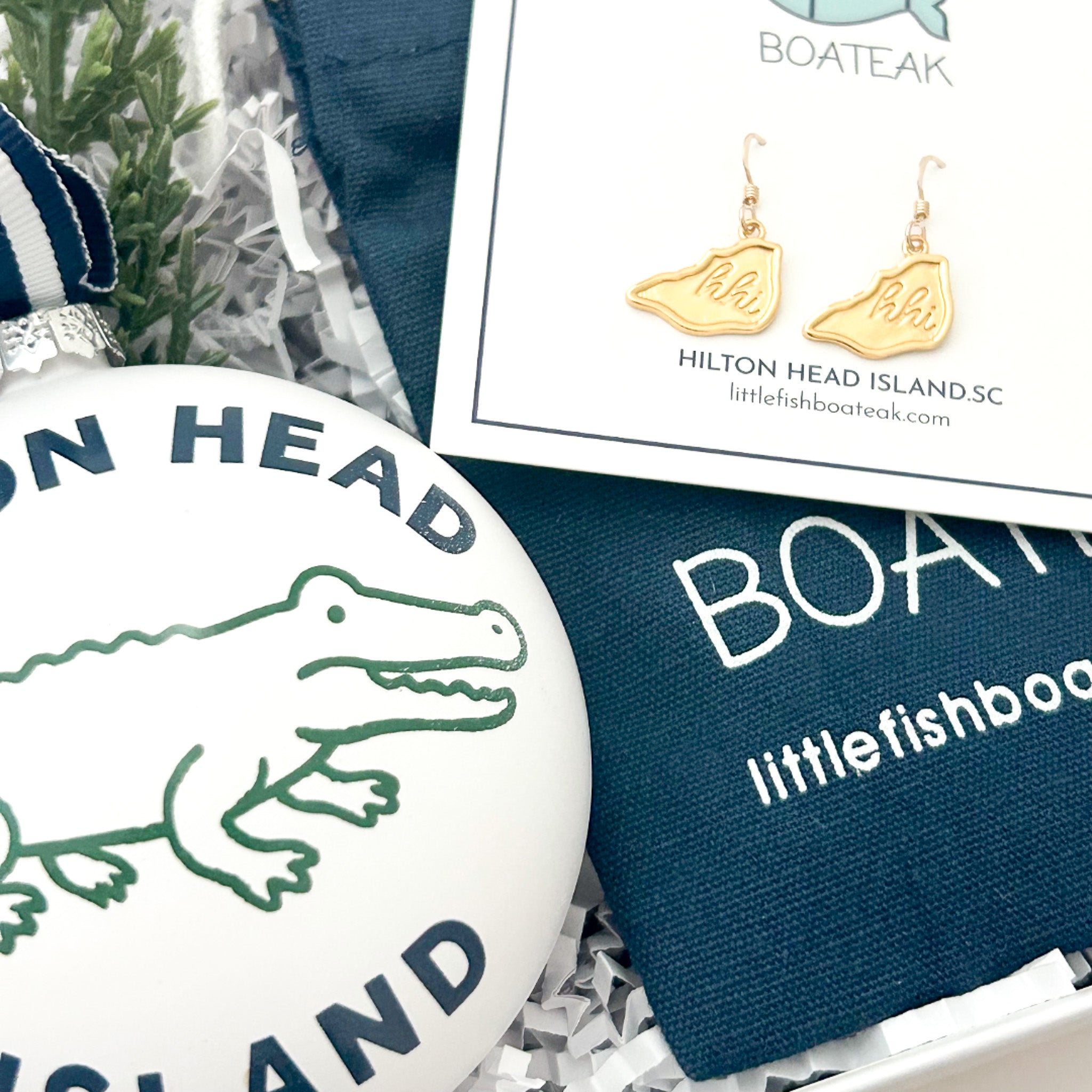 Bring a touch of Hilton Head magic to the holidays with our Lowcountry Alligator Box Set, a beautifully curated duo designed to celebrate the charm, whimsy, and coastal elegance of the Lowcountry.