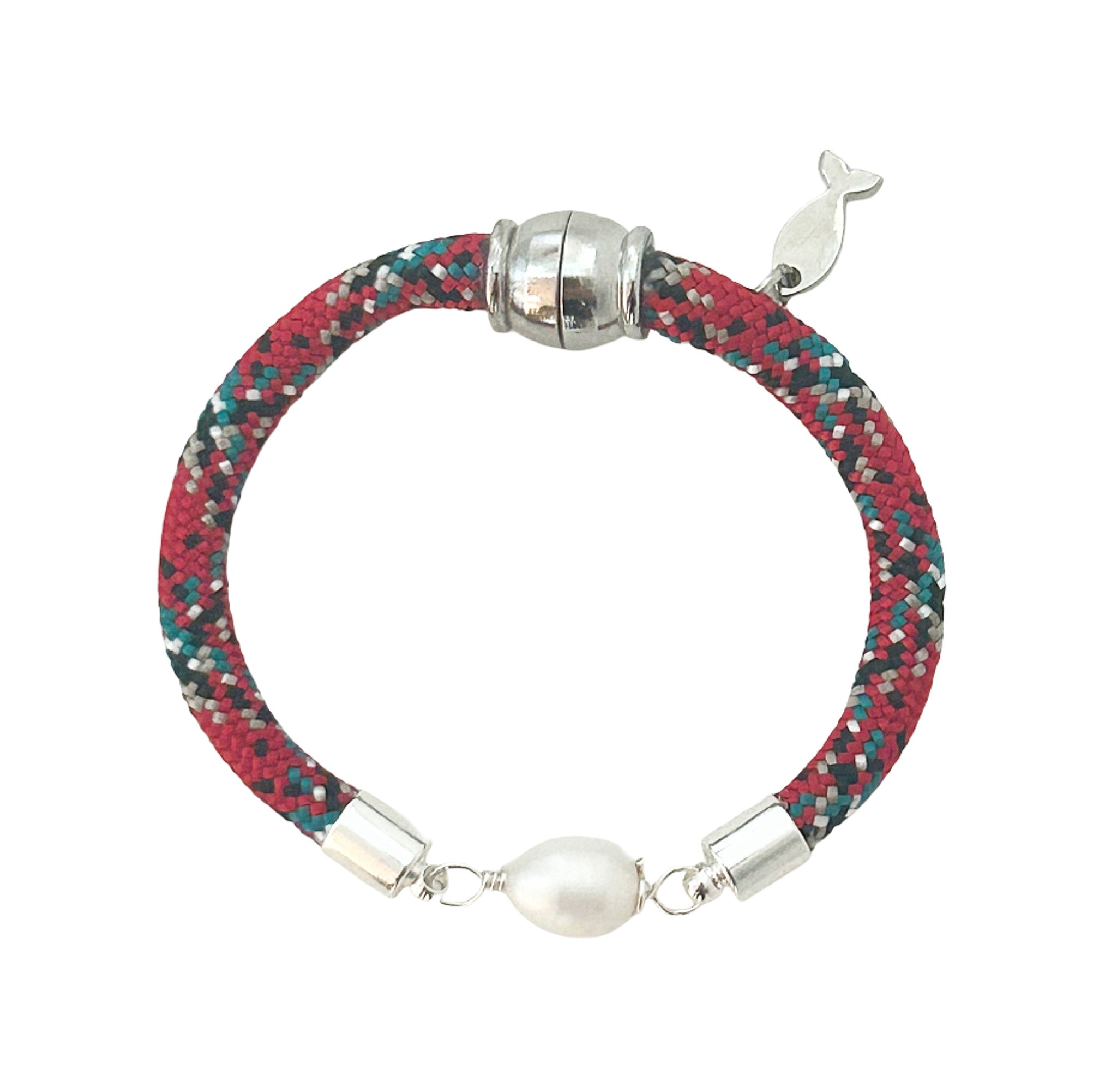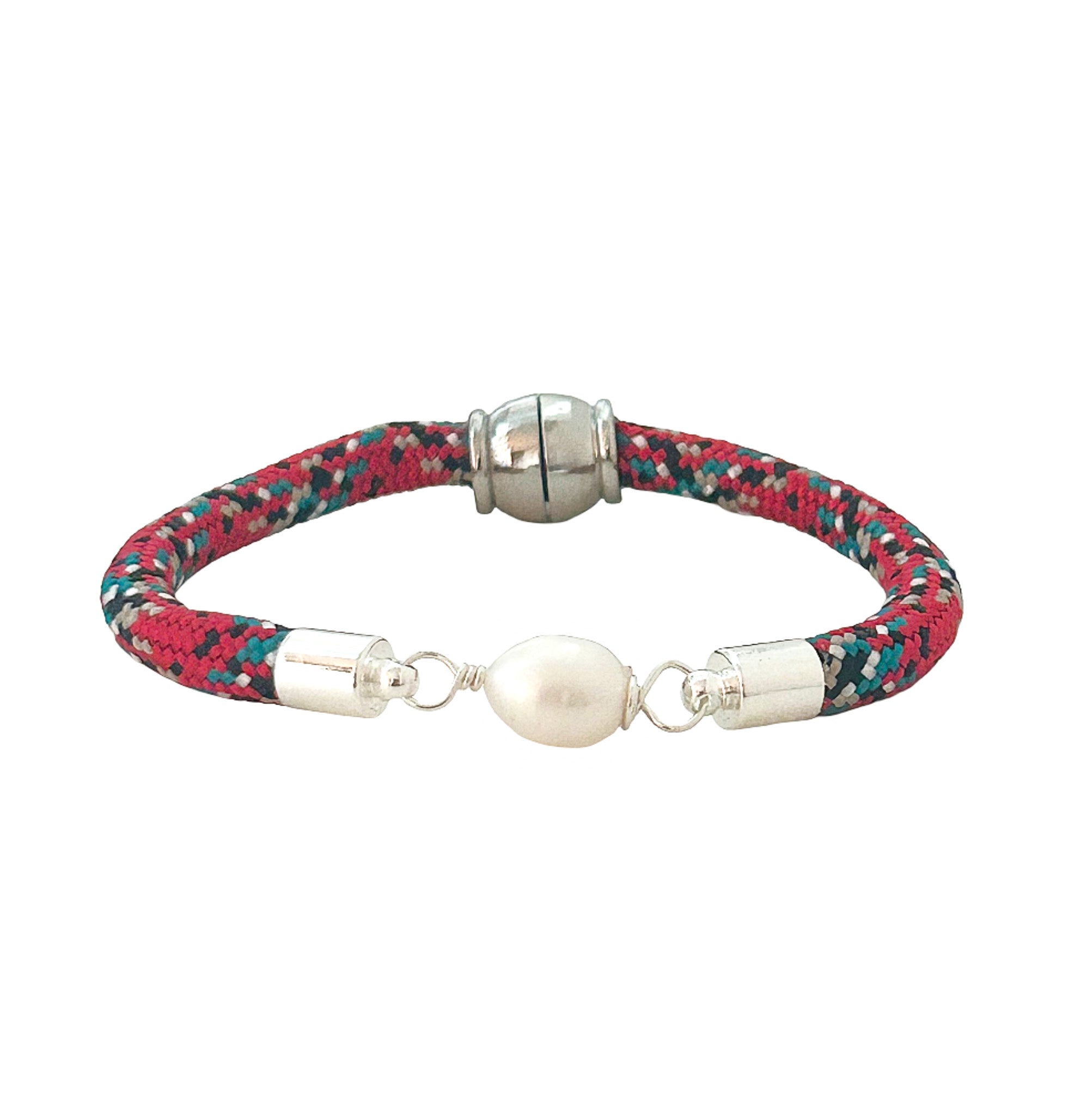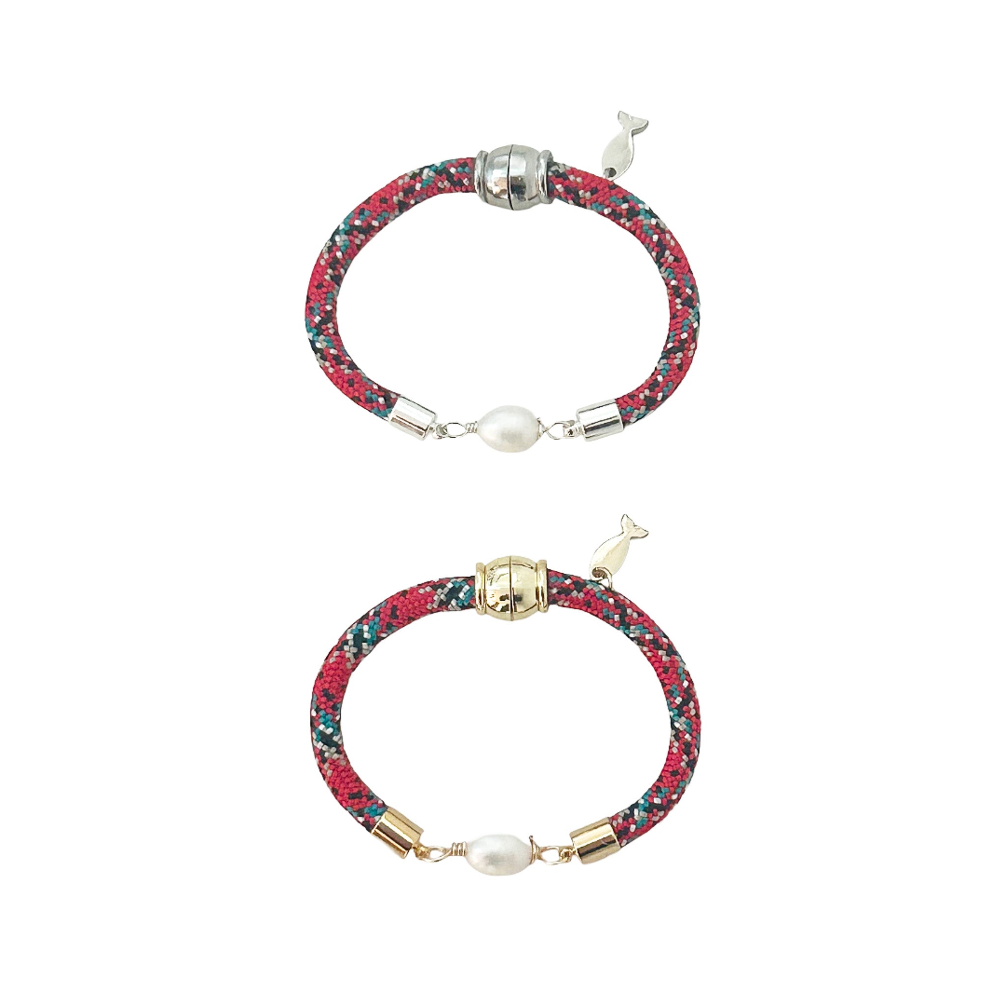 A soft, feminine twist on nautical style, this pearl-accented rope bracelet features an easy magnetic clasp for everyday elegance with a custom made plaid rope!
