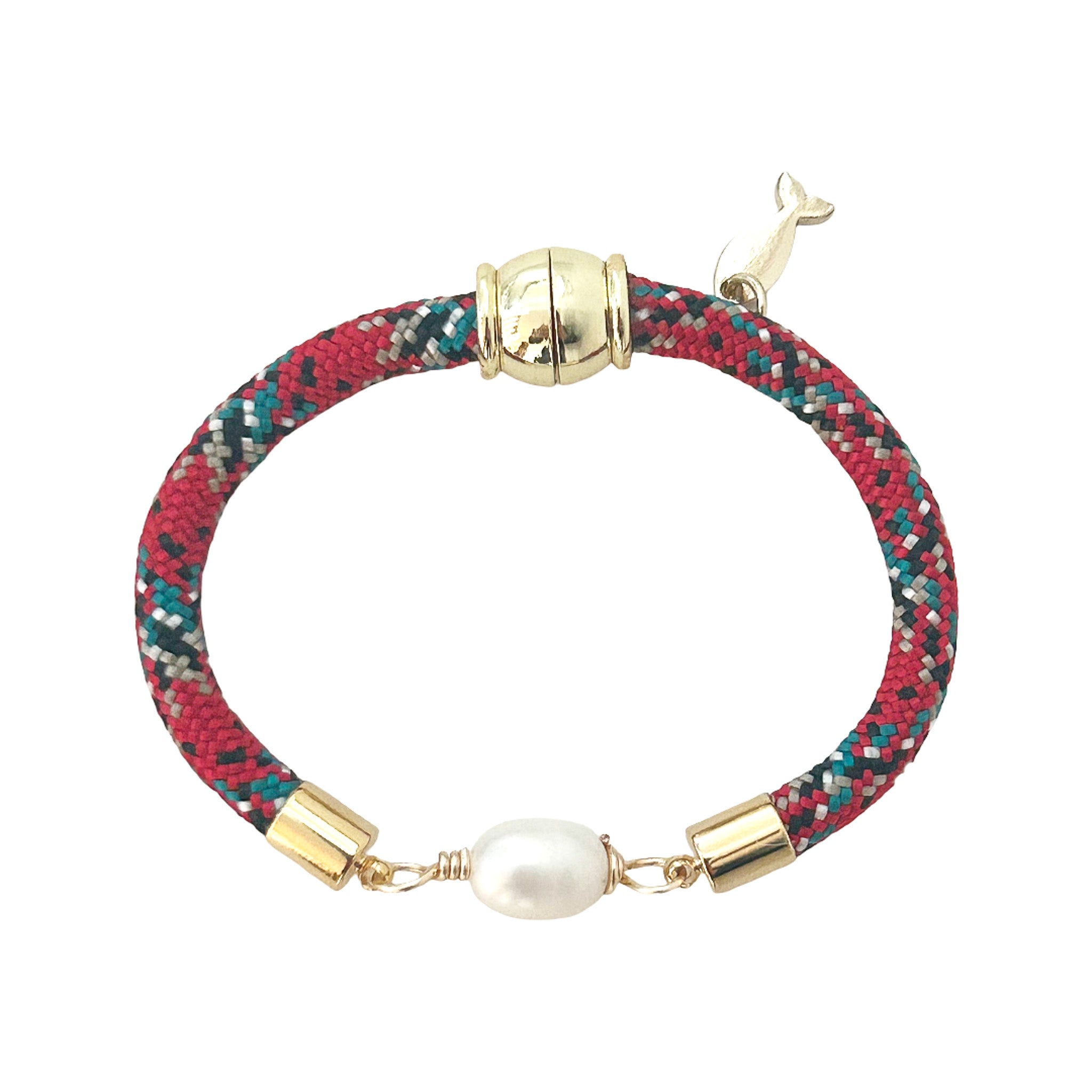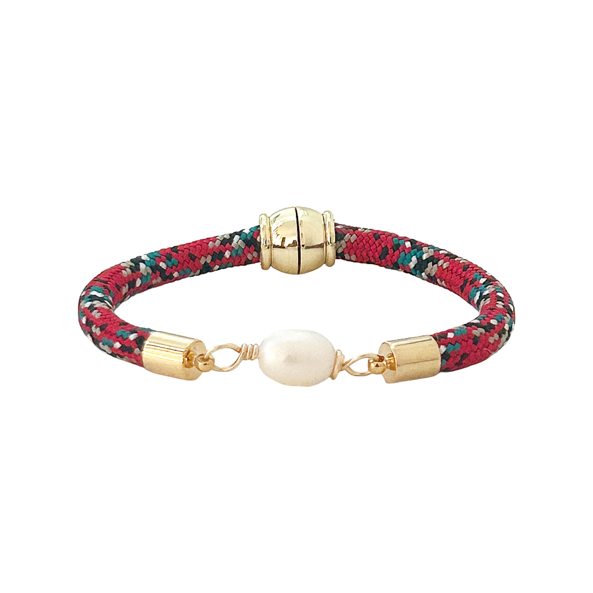 A soft, feminine twist on nautical style, this pearl-accented rope bracelet features an easy magnetic clasp for everyday elegance with a custom made plaid rope!