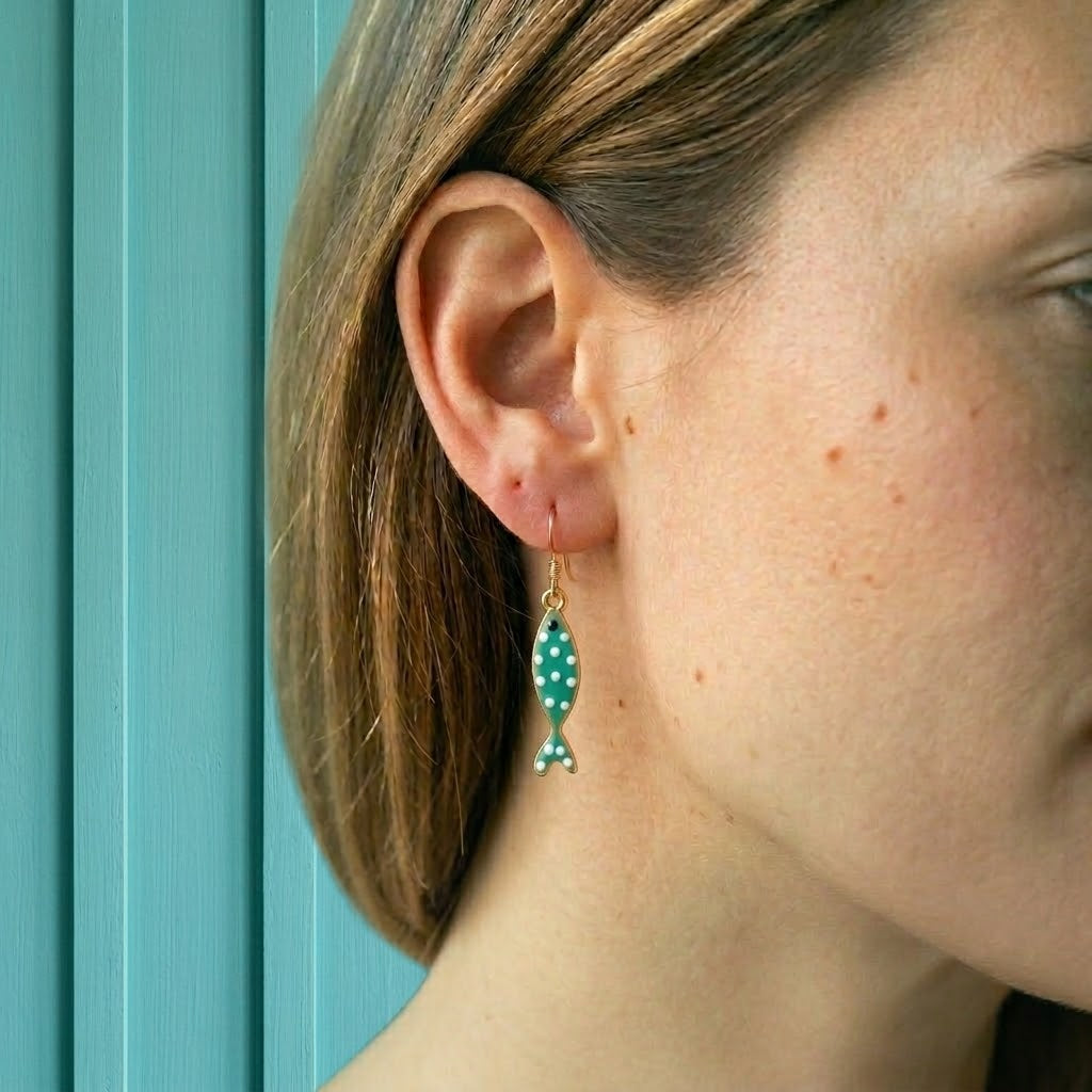 Crafted with 14kt gold-filled ear hooks and 18kt gold-filled over brass fish charms, they offer lasting shine and durability.