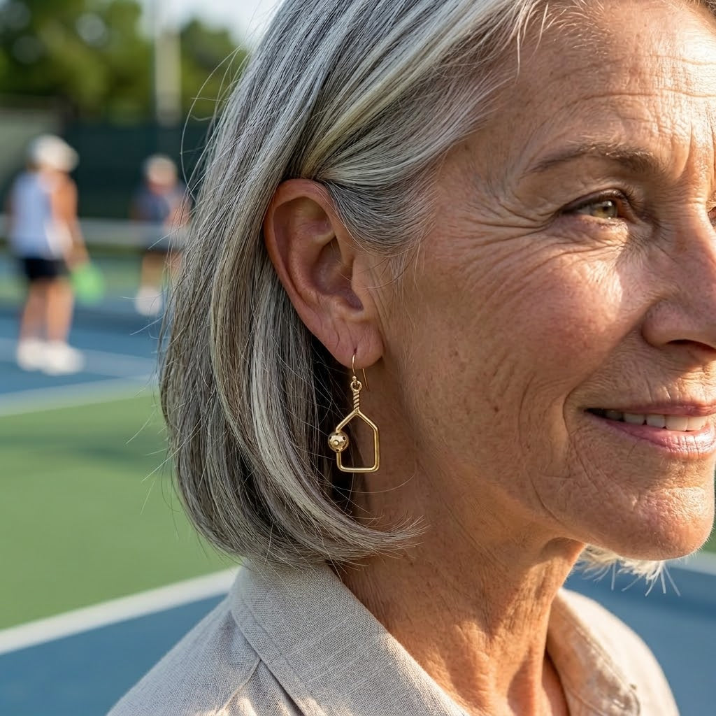 Crafted with 14kt gold-filled ear hooks and 18kt gold-filled over brass paddle charms, these earrings offer lasting shine and durability. Whether you're heading to the court or celebrating a win after the match, they’re the perfect accessory for pickleball lovers.