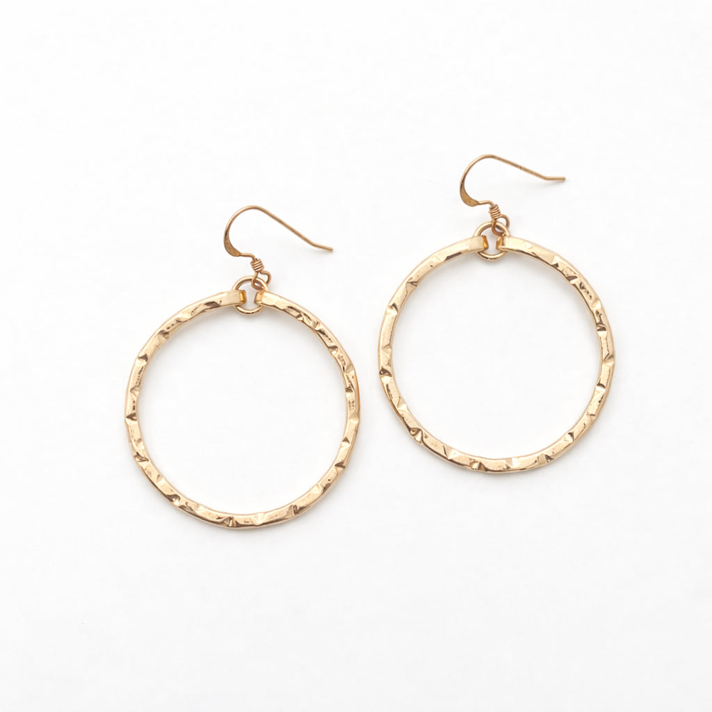 These lightweight gold hoop earrings are part of our signature metal collection and are hand designed for everyday wear. Their softly hammered texture reflects the light beautifully, adding subtle shimmer while keeping a relaxed coastal style that pairs perfectly with both casual and dressed-up looks.