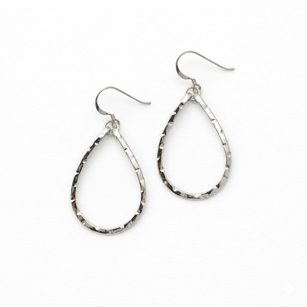 These lightweight silver teardrop earrings are part of our signature metal collection and are hand designed for everyday wear. Their softly hammered texture reflects the light beautifully, adding subtle shimmer while keeping a relaxed coastal style that pairs perfectly with both casual and dressed-up looks.
