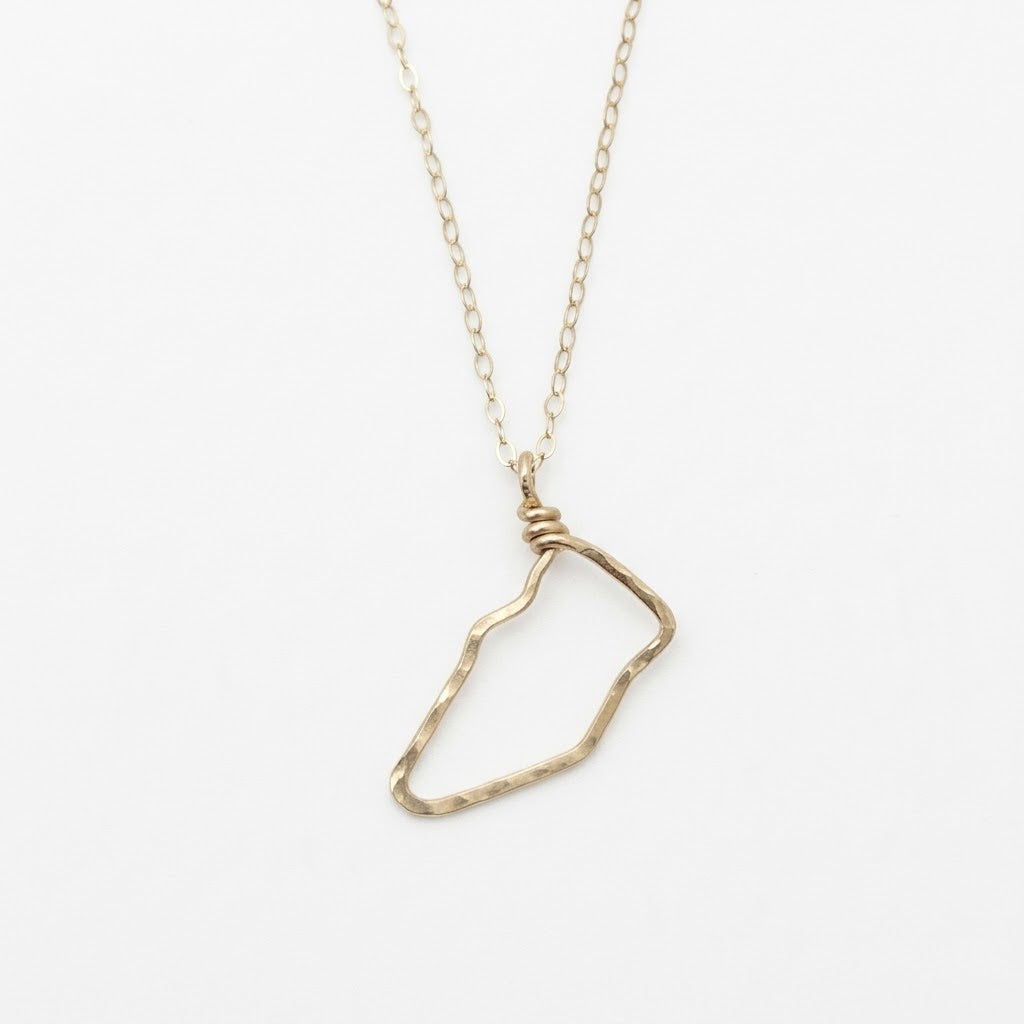 Hand shaped and hand forged Hilton Head Island pendant made using 14kt gold filled or sterling silver wire on a delicate chain. Spring ring clasp with two inch extender chain.