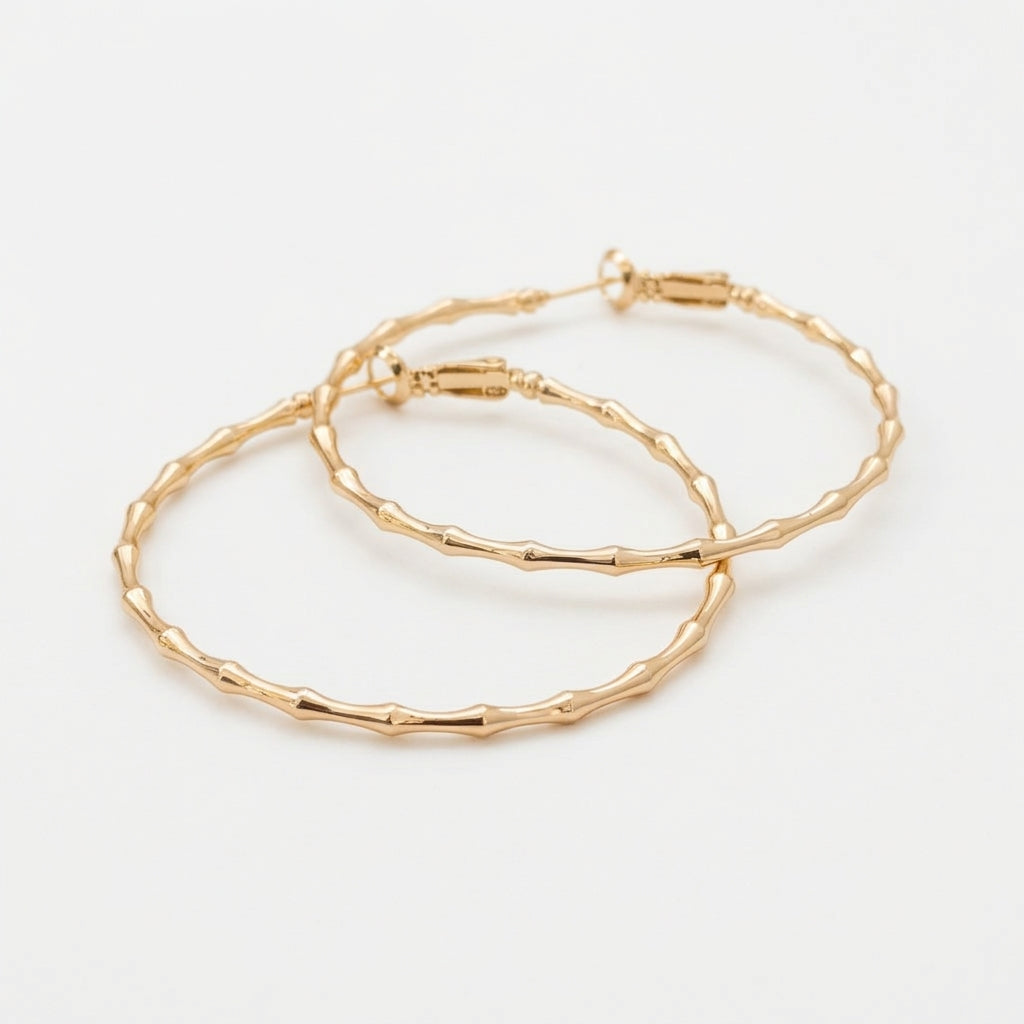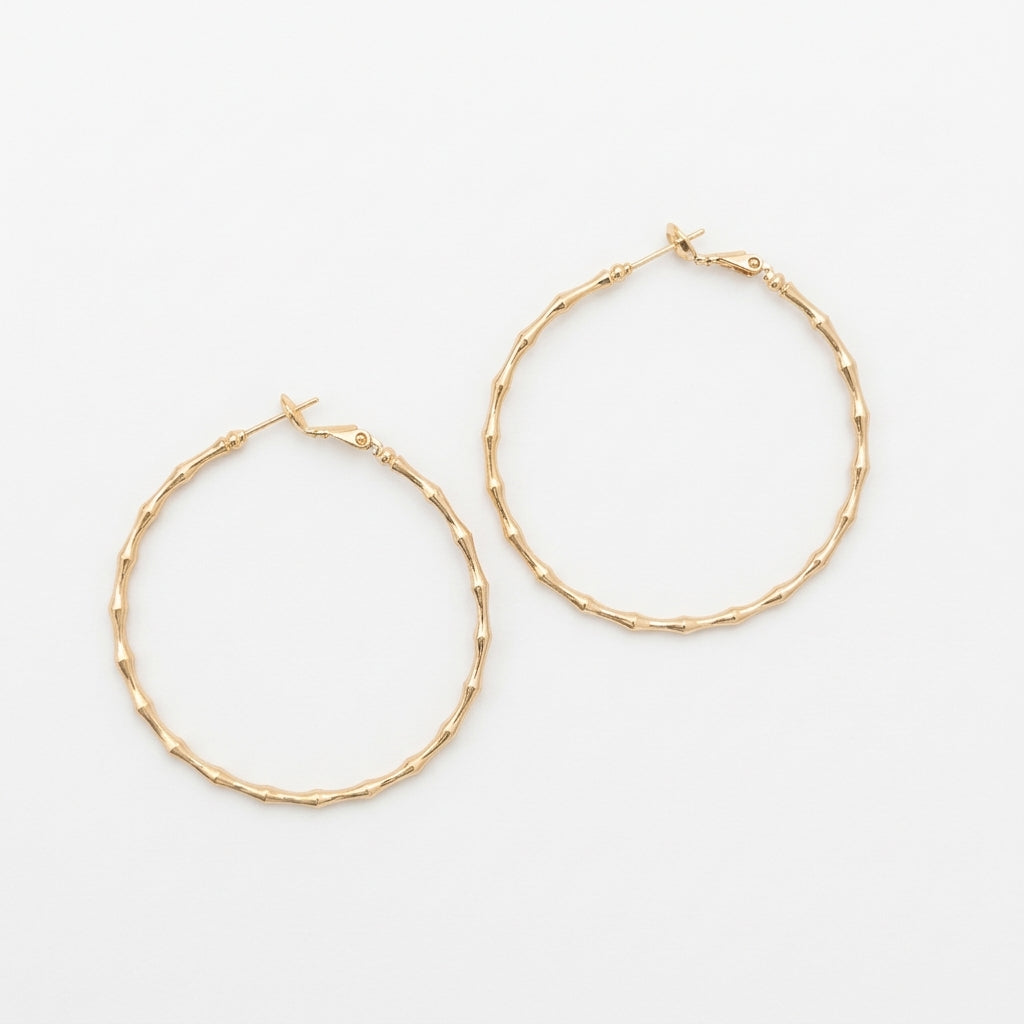 Large Gold Bamboo Hoop Earrings