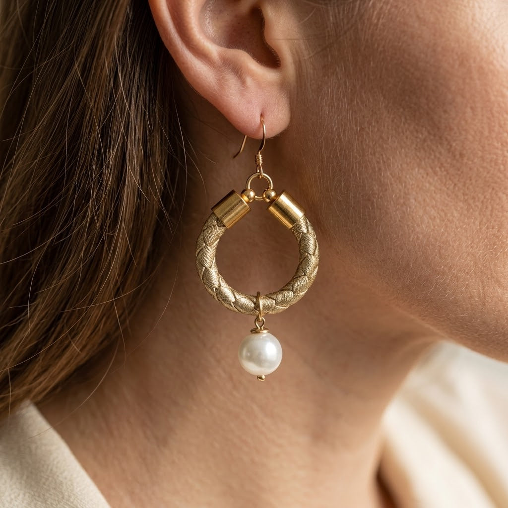 Small Gold Rope Hoop Earrings with pearl