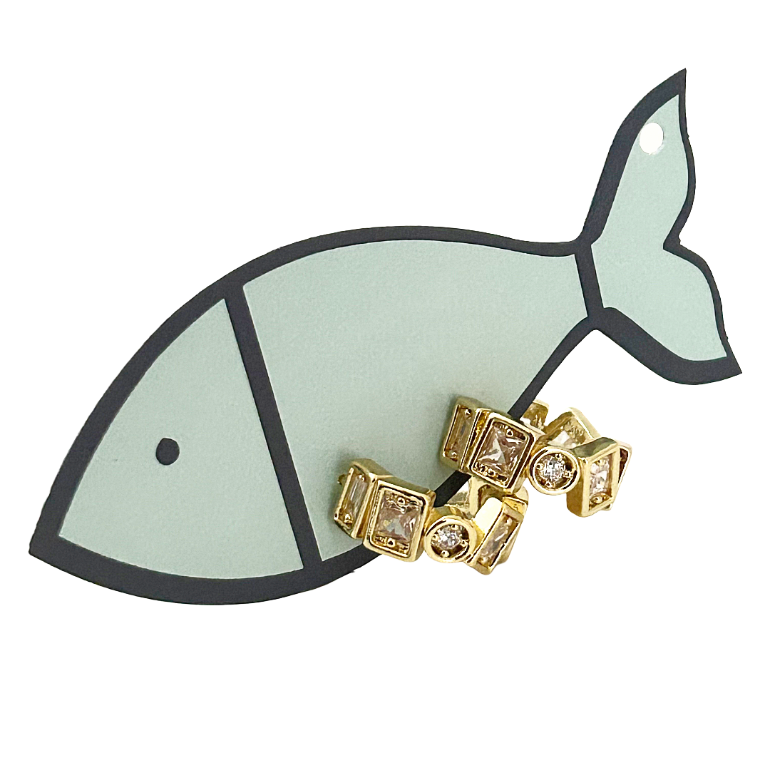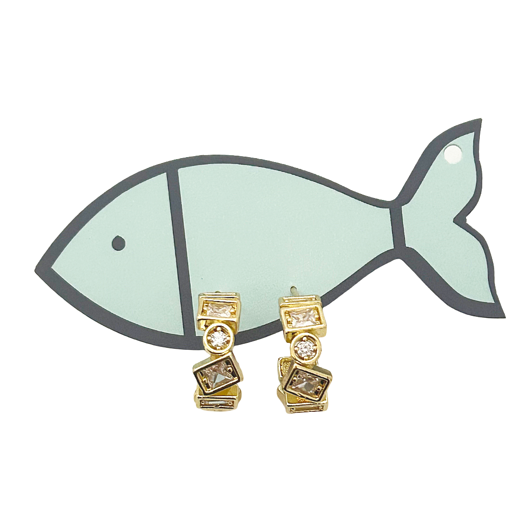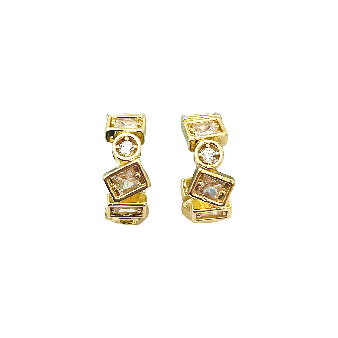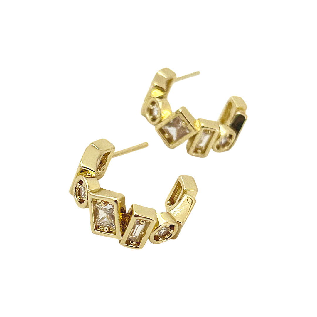 Sophisticated hoop earrings featuring irregularly placed cubic zirconia stones set in 18kt gold-filled coating. At three-quarters of an inch, these abstract-inspired pieces deliver contemporary edge with refined sparkle, ideal for those seeking distinctive jewelry with understated luxury.