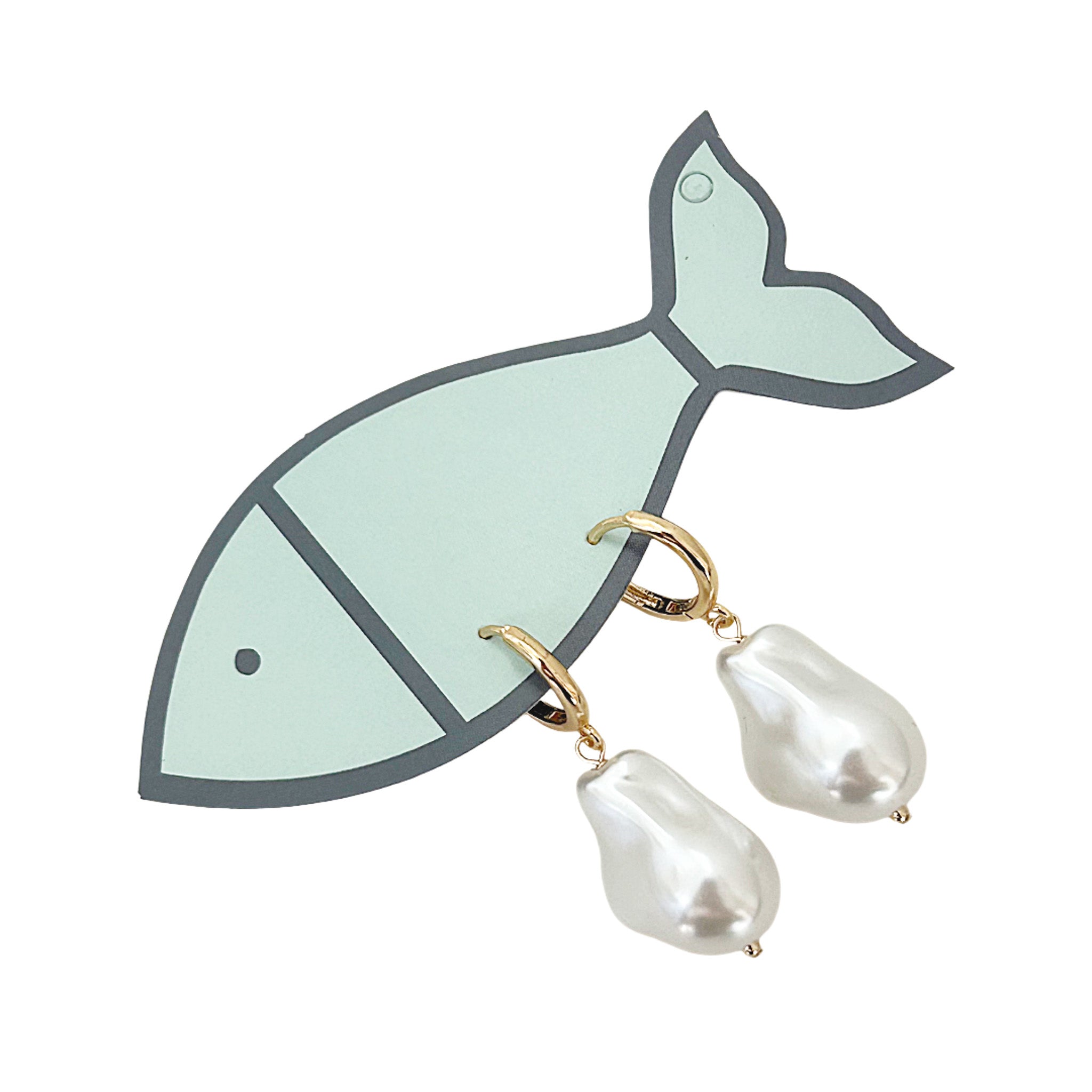 .25" gold filled latch hoop dangles with 1.25" faux acrylic baroque pearl- lightweight