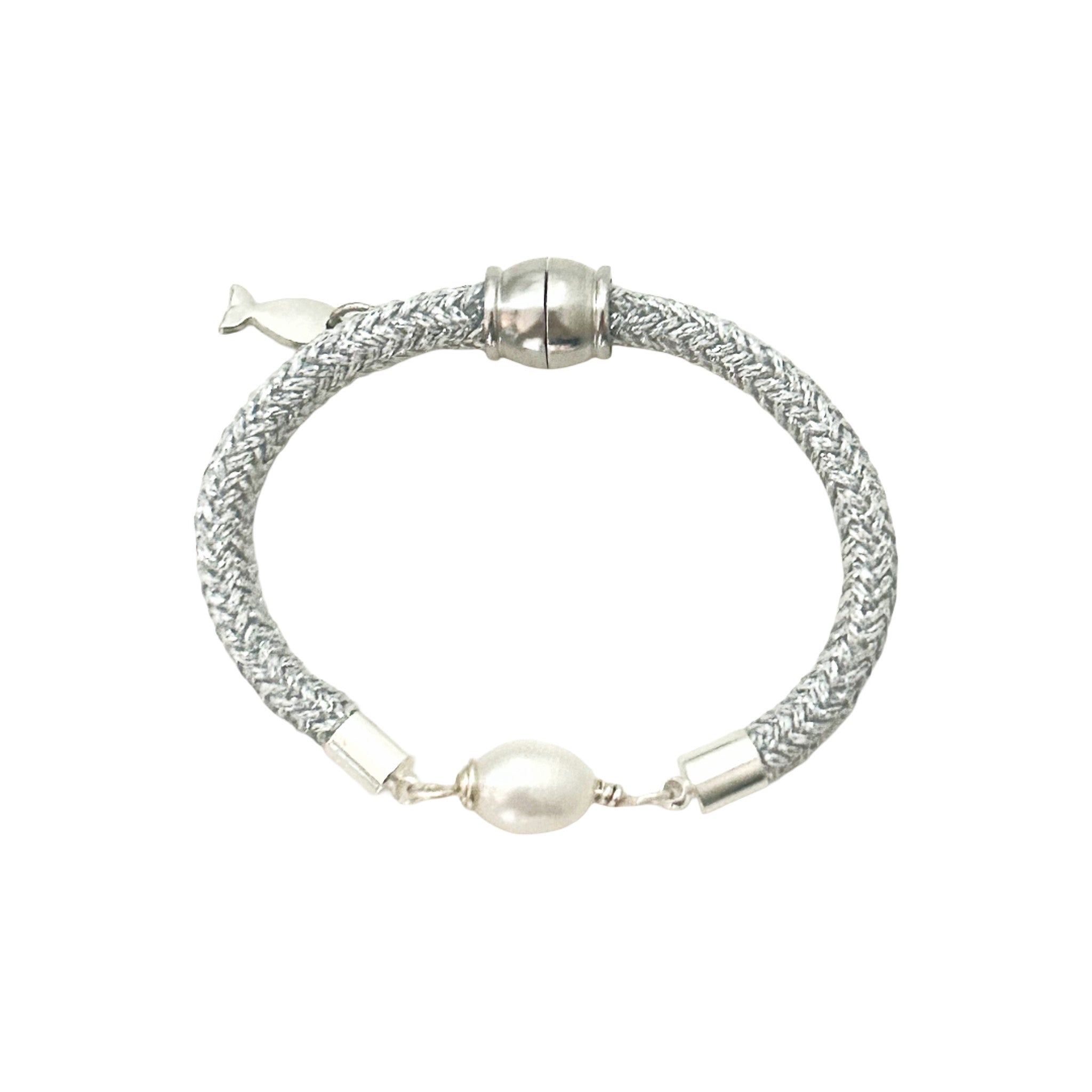 Our best-selling pearl bracelet is a crowd favorite. Perfect for gifting, this bracelet is created with nautical rope cord, hand wired freshwater pearl accent and brass or silver plated magnetic closure.