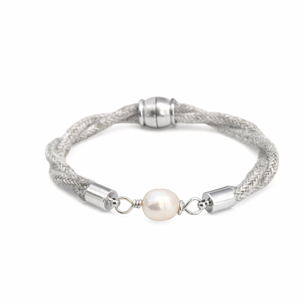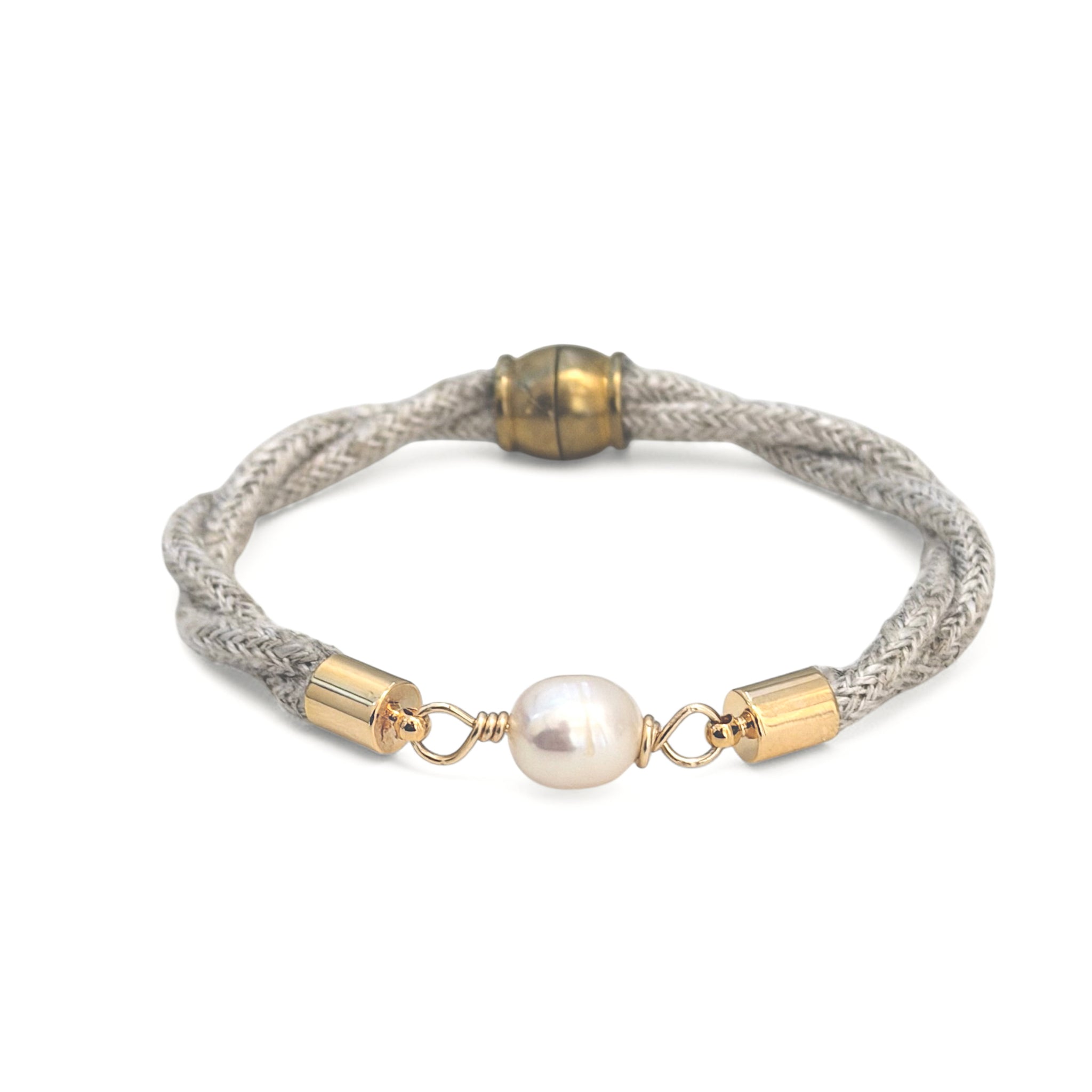 The natural texture of the linen cord gives the bracelet a soft, organic feel, while the pearl adds a classic touch of sophistication. Finished with a secure magnetic closure, it slips on easily and layers beautifully with your favorite bracelets.