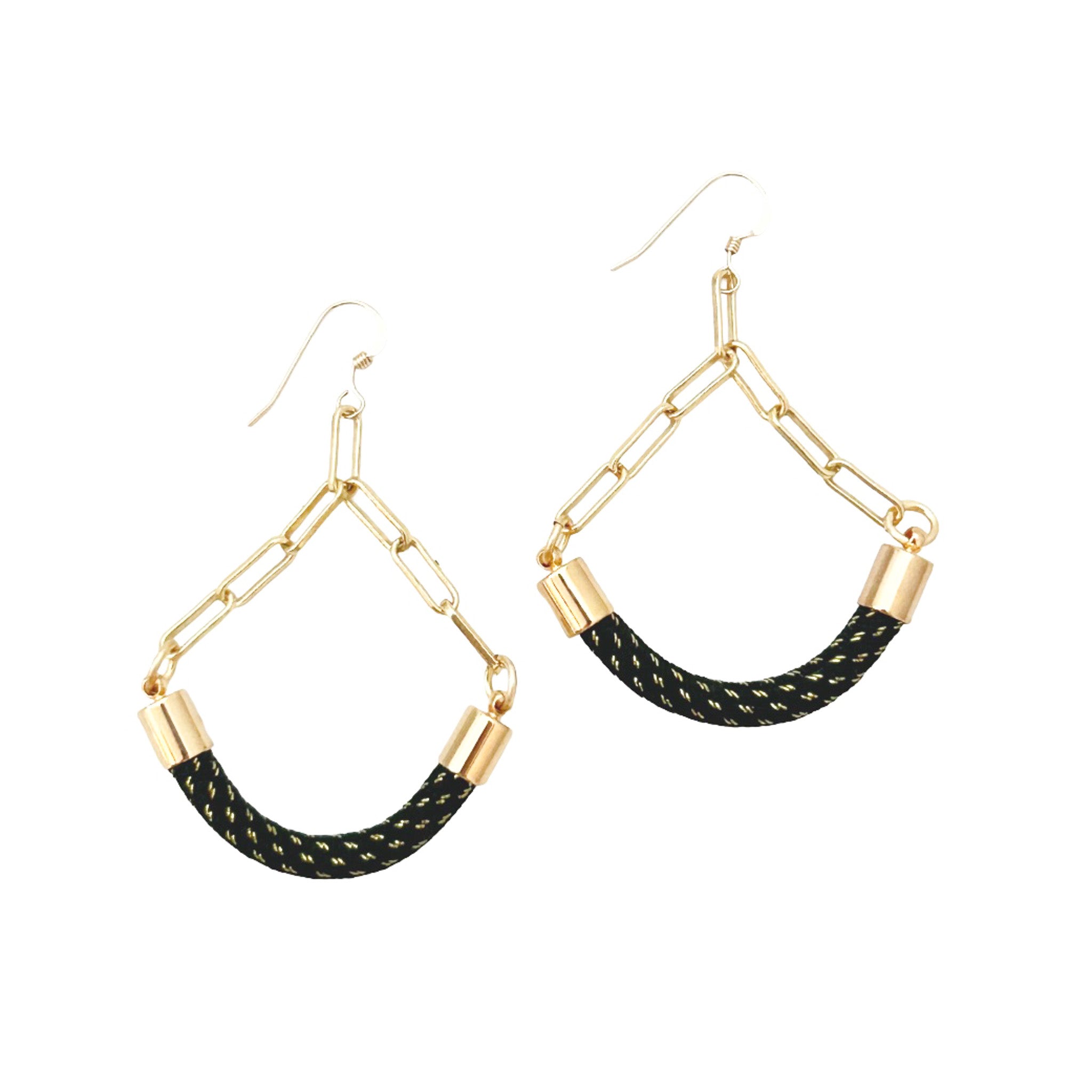 14kt gold filled ear hooks with a unique combination of rope and paperclip chain creating light weight dangles measuring 2.75"