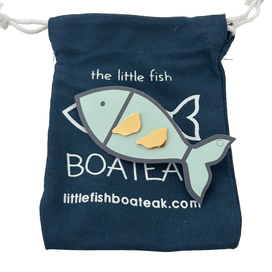 High-quality 18kt gold-plated finish for lasting durability. Features our custom HHI design, created exclusively for Little Fish.
